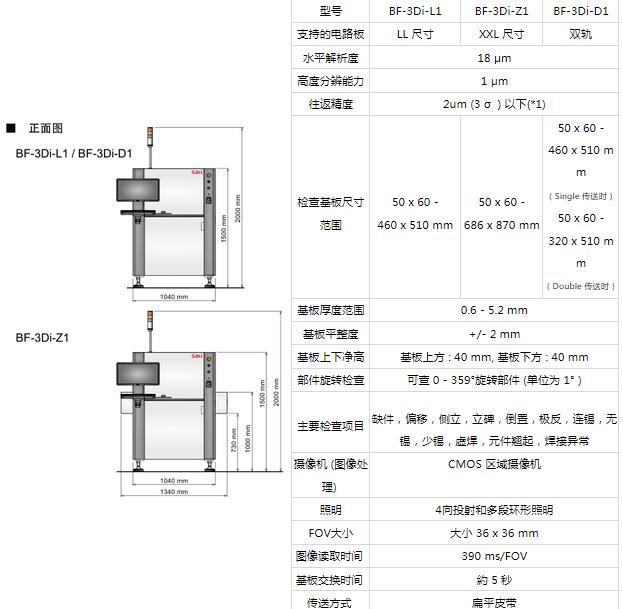 SAKI在線在線AOI自動光學(xué)檢測儀BF-3Di參數(shù)簡介:
