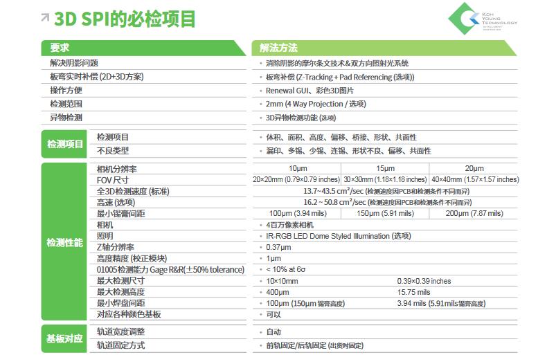全三維測量檢測解決方案 - 通過使用雙向投影解決陰影問題 - 全三維異物檢測方案,適用于整個 PCB - 提供帶實時 PCB變形補償的精確檢測數據